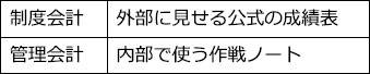 会社の外部(株主・銀行・税務署など)に報告するため、法律や会計基準などの一定のルールにしたがって決算書などを作成する「制度会計」と大きく異なります。