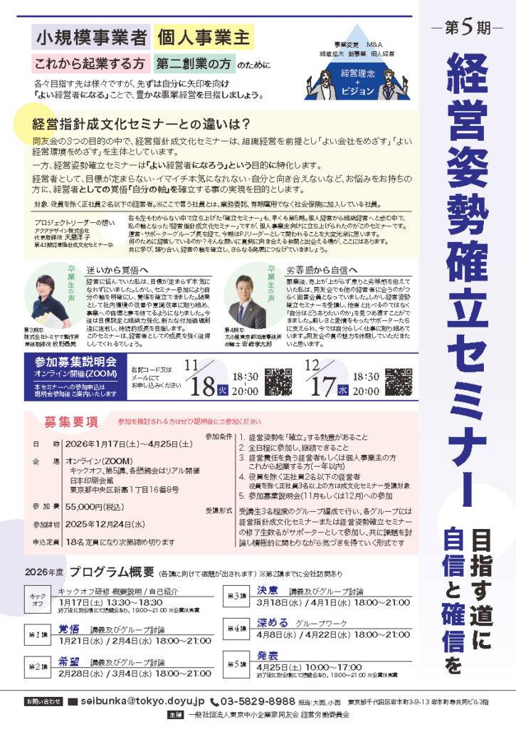 「経営姿勢確立セミナー」をオンライン中心で開催しています。